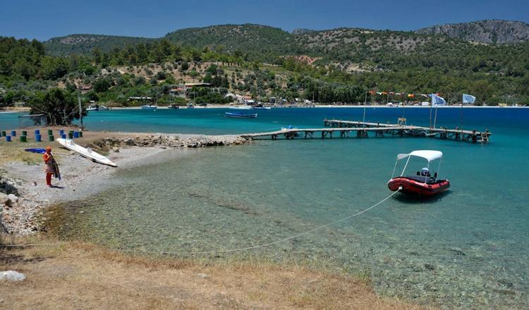 Alaçatı Sörf Sahili. Tesisin denize uzaklığı 750 metrenin üzerindedir. Eğitim almak istiyorsanız mayıstan önce veya eylülden sonra gelmenizi.