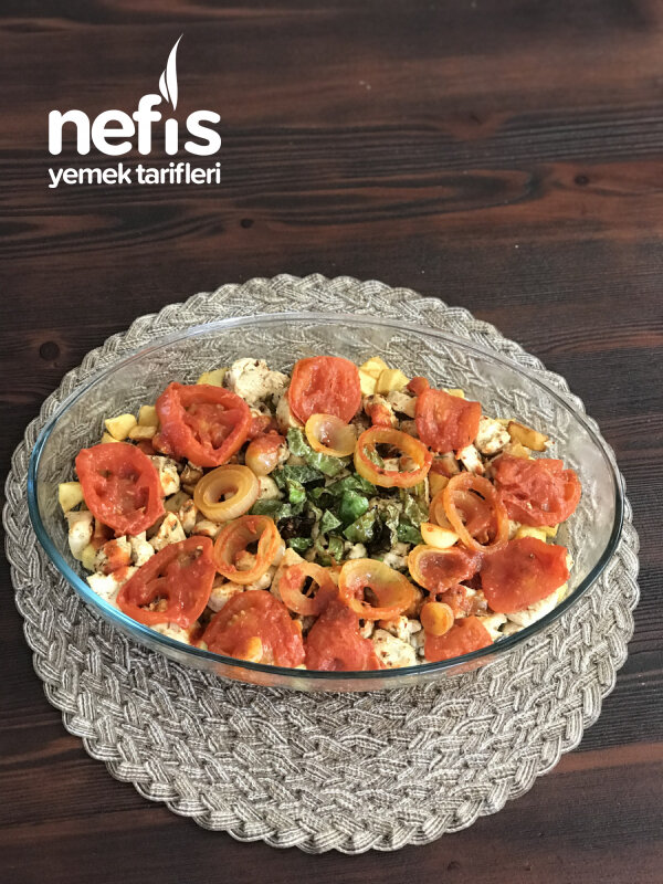 Borcamda Patatesli Tavuk. 4 adet tavuk but, 2 adet patates, 1 tatlı kaşığı domates salçası, 1 tatlı kaşığı yoğurt, 1 yemek kaşığı sıvıyağ, tuz, kekik, köri, kimyon, kırmızı pulbiber, 1 küçük diş rendelenmiş sarımsak, 2 yemek kaşığı sıvıyağ, kırmızı pul biber, kekik, tuz, kırmızı toz biber. Akşam yemeğine misafir bekleyenler, pratik bir tavuk tarifi isteyenler için bulunmaz bir nimet fırında patatesli tavuk.