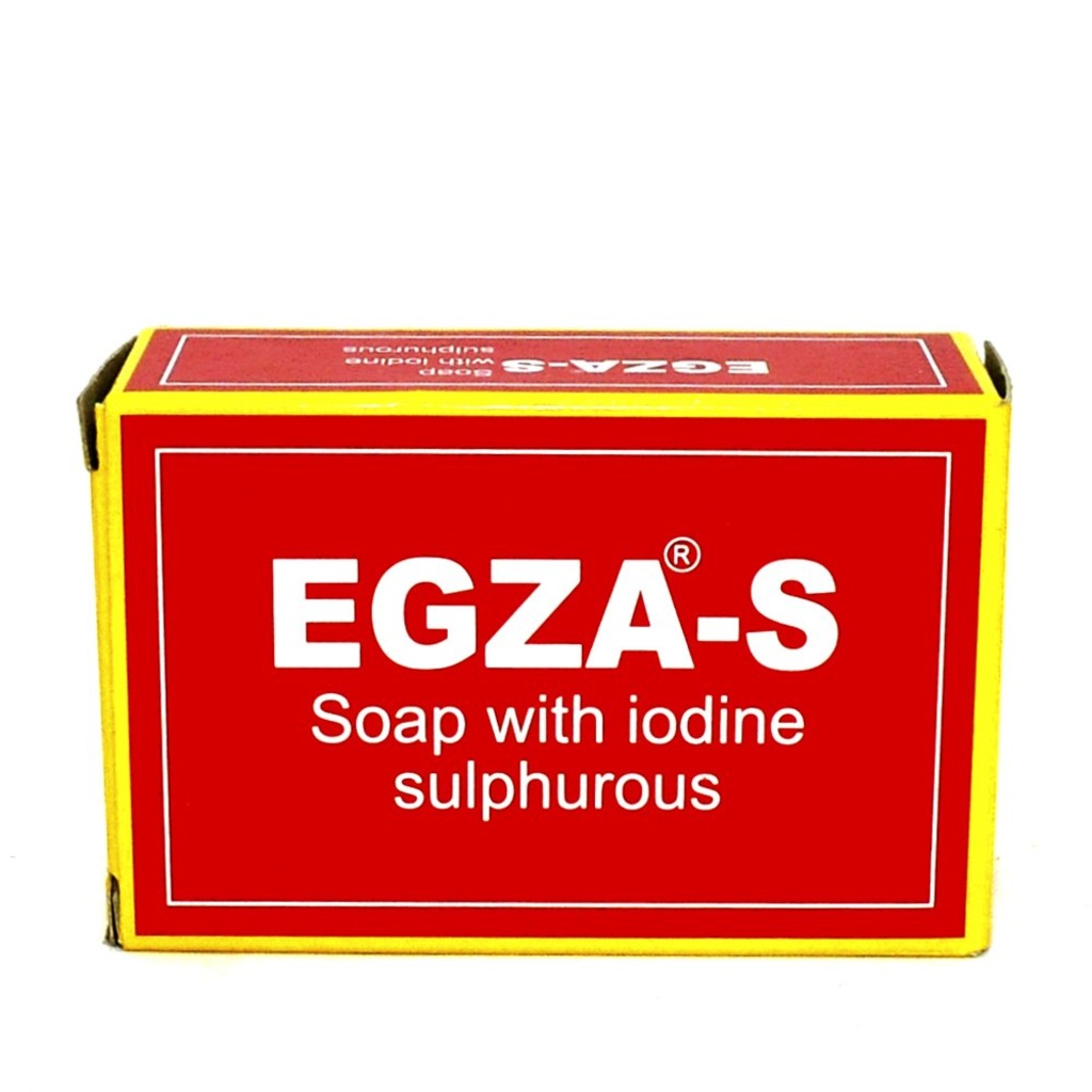 Egza Sabun. Sabun sıcak suda köpük koyulaşana kadar köpürtülür. 2 adet egza kükürtlü sabun.