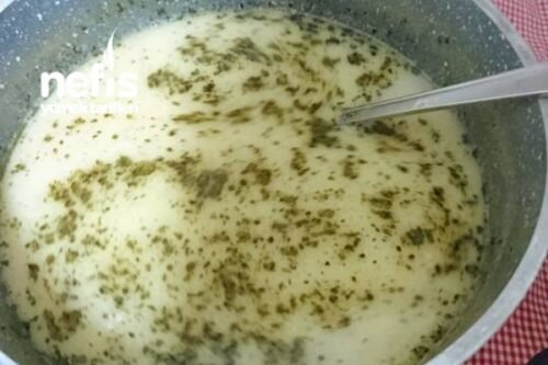5 su bardağı su ile pişirin.bir kasede yoğurt ve naneyi çırpın ve göce haşlandıktan sonra çırptığımız.