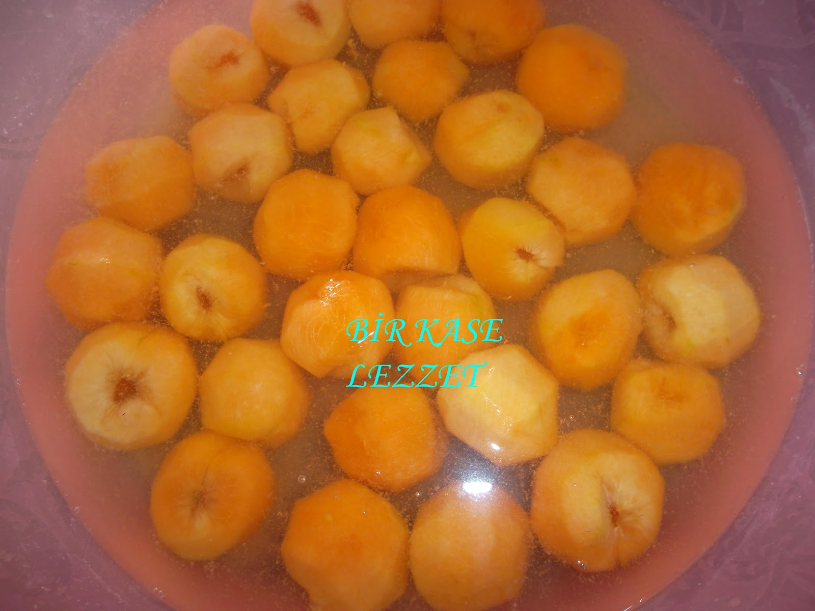 Kayısı Reçeli Kirece Yatırılmış. Çilek, vişne,gül reçeli dışında, reçel yapılan bal kabağı,erik şeftali,,domates,patlıcan karpuz,kavun,kayısı,ceviz reçeli gibi kaymakla pişecek olan sebze meyvalara kullanabilirsiniz. Çok sert kayısı alırsanız sabaha kadar bekler ve daha sert reçel olur.