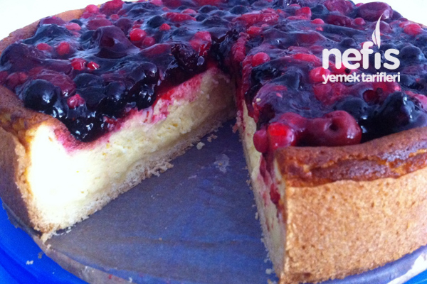 Orman Meyveli Cheesecake. 2 paket burçak bisküvi 50 gram tereyağı kreması için; 400 gram labne 400 gram çiğ krema 1 su bardağı şeker 2 yumurta 2 yemek.