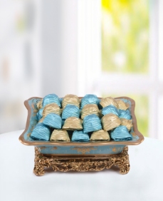 Söz çikolatası genellikle şık bir gümüş tabak, cam tepsi ve benzeri gümüş ile camın göz kamaştıran uyumu hazırlanan tasarımlarda sunulmaktadır.